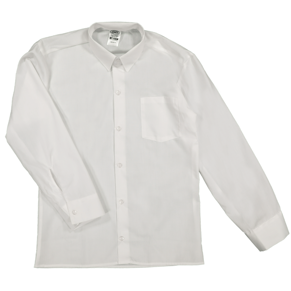 White Long Sleeve Raised Collar School Shirt . School